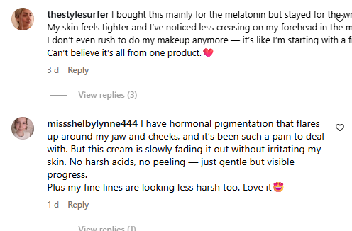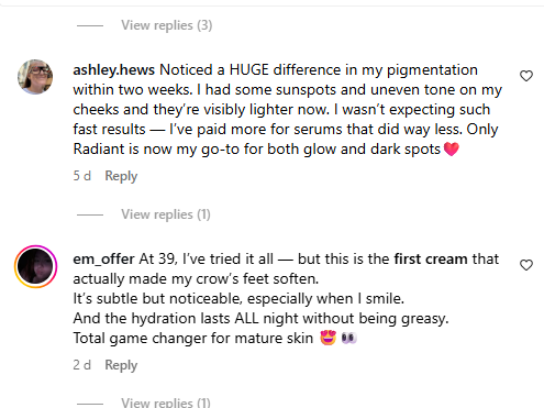 "Honestly, I didn't think a cream could make this much difference. My skin tone looks way more even, and the smile lines I hated are barely visible now!"